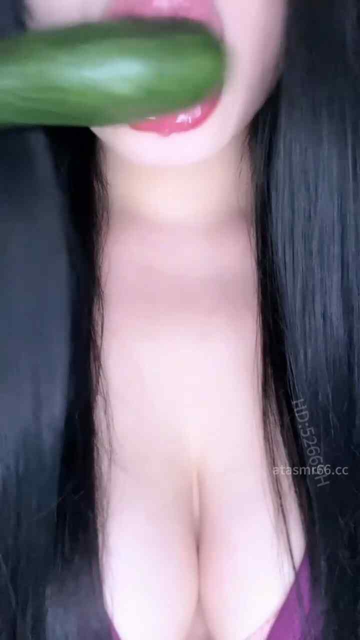 梨落 舔黄瓜超多口水